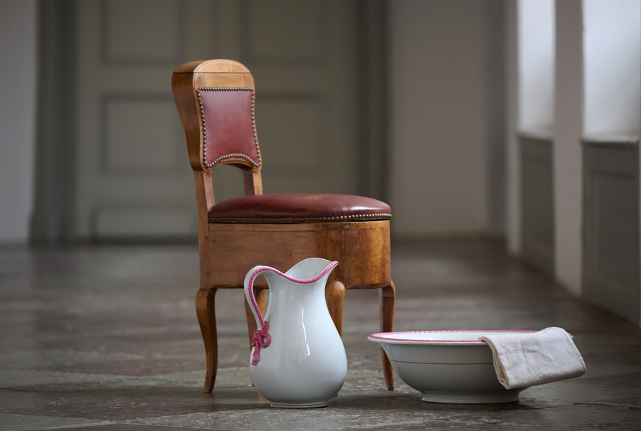 Ganz aktuell ist ein mit historischer Badausstattung eröffnetes Badezimmer. Zentrale Bademöbel sind unter anderem eine Waschkomode und ein Bidetstuhl. Diese Möbel sind typische Elemente, die den Adeligen im späten 19. Jahrhundert an Annehmlichkeiten bei der Körperhygiene zur Verfügung standen.